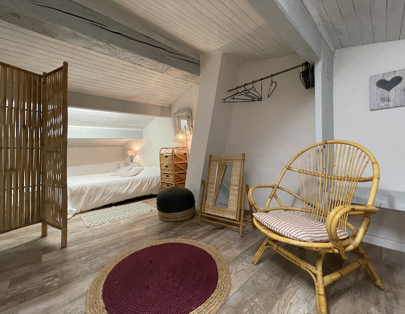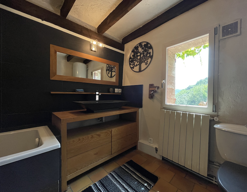 D’une surface de 70m2, le gîte Cévenol est composé au rez-de-chaussée d’une chambre avec un lit double, une salle de bain avec baignoire et wc, ainsi que d’un espace d’un séjour avec cuisine ouverte. Son étage en mezzanine peut accueillir 4 autres personnes avec un lit double et 2 lits simples, séparés par un paravent.